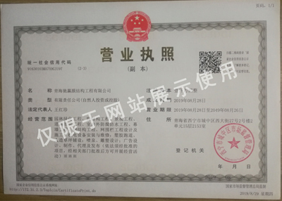 青海馳贏膜結(jié)構(gòu)工程有限公司(17716069209)是一家專門從事膜結(jié)構(gòu)工程的綜合公司,公司秉承信譽(yù)至上、質(zhì)量保障的宗旨,開拓、發(fā)展、創(chuàng)新的理念,公司目前主要從事膜結(jié)構(gòu)設(shè)計(jì),方案設(shè)計(jì)、剪裁設(shè)計(jì)、膜材加工及鋼結(jié)構(gòu)安裝與維修。